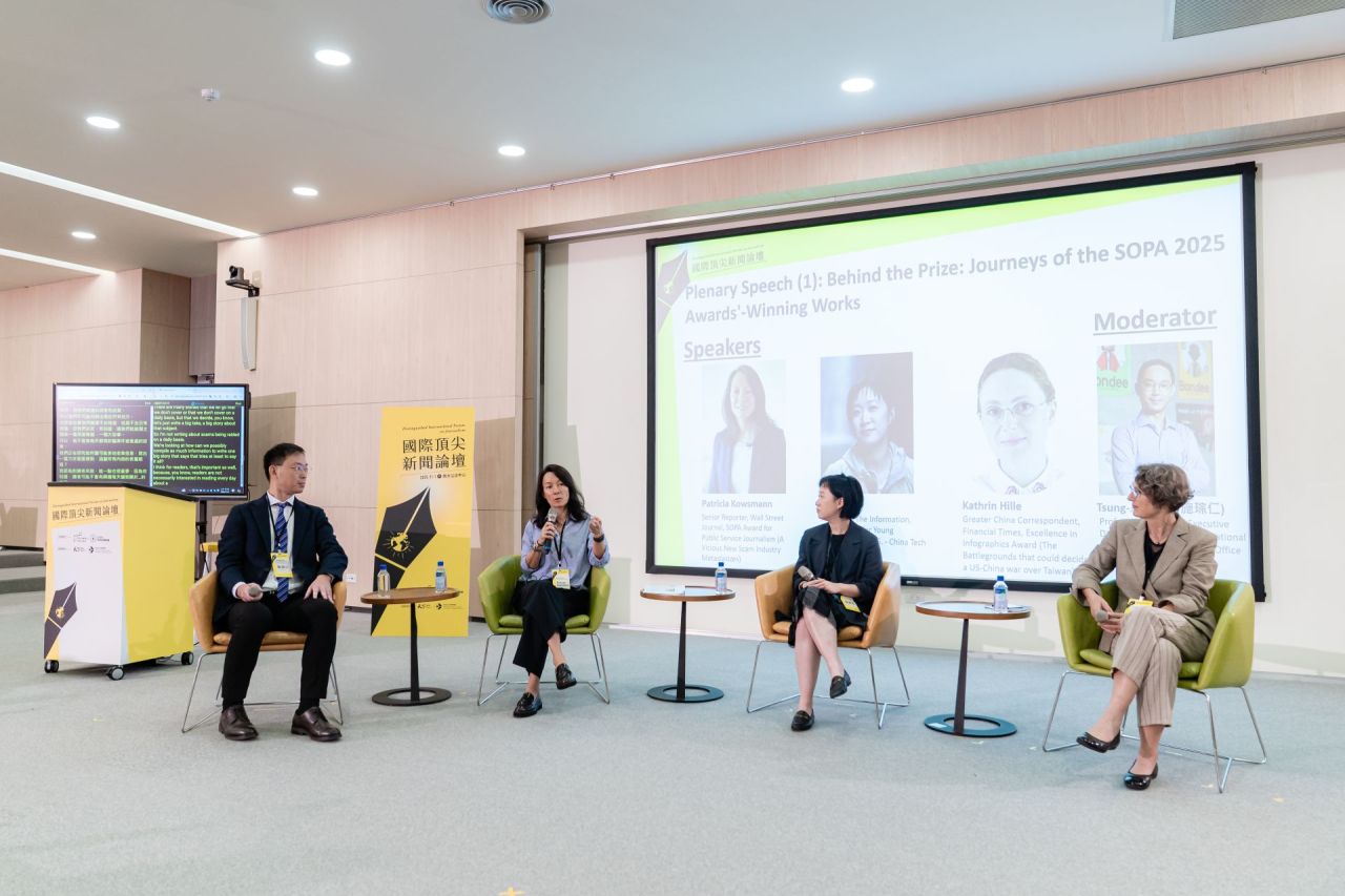 From October 31 to November 4, 2025, SOPA Week was held in Taipei in collaboration with National Chengchi University (NCCU), marking the first edition of the event in Taiwan. The Distinguished International Forum on Journalism brought together three international SOPA Award winners: Patricia Kowsmann of The Wall Street Journal, Qianer Liu of The Information, and Kathrin Hille of the Financial Times, alongside Taiwan’s award-winning journalists De-Lin Fang of The Reporter, Lauly Li of Nikkei Asia, and Silva Shih of CommonWealth Magazine, to exchange insights on investigative reporting, cross-border journalism, and editorial innovation.